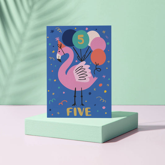 Age 5 Birthday Card – Flamingo Theme – Number Card for Kids – Five Years Old