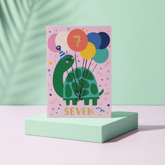 Age 7 Birthday Card – Turtle Theme – Number Card for Children – Seven Years Old