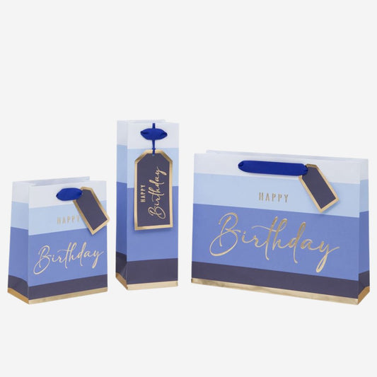 Medium Happy Birthday Blue Stripe Gift Bag