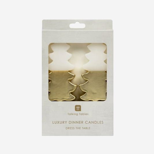 White & Gold Christmas Tree Shaped Candles - 2 Pack