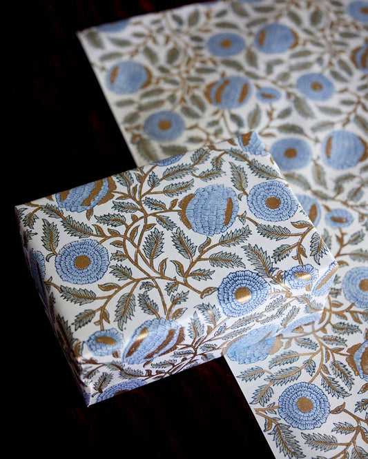 Marigold Glitz Blue Stone Block Printed Wrapping Paper Sheets