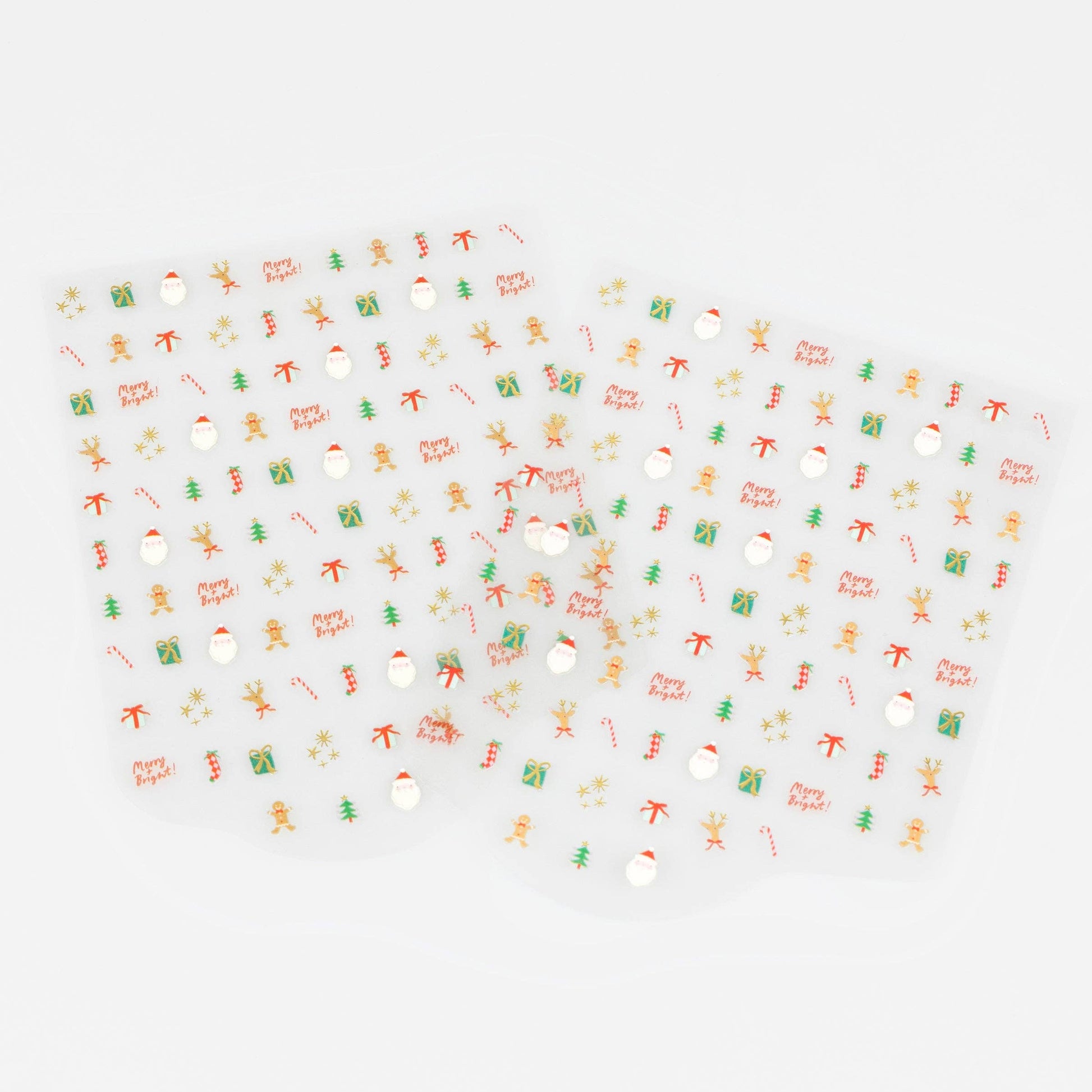 Treat kids to a Christmas accessory with flair. Simply apply these chic nail stickers for enchanting effects in seconds. Presented in joyful Santa packaging, this set features iconic festive motifs with shiny gold details for a shimmering effect. The perfect gift for a fashionable Yuletide fan, as a Christmas party activity, for sleepover fun, a stocking filler, or pop into seasonal party bags.