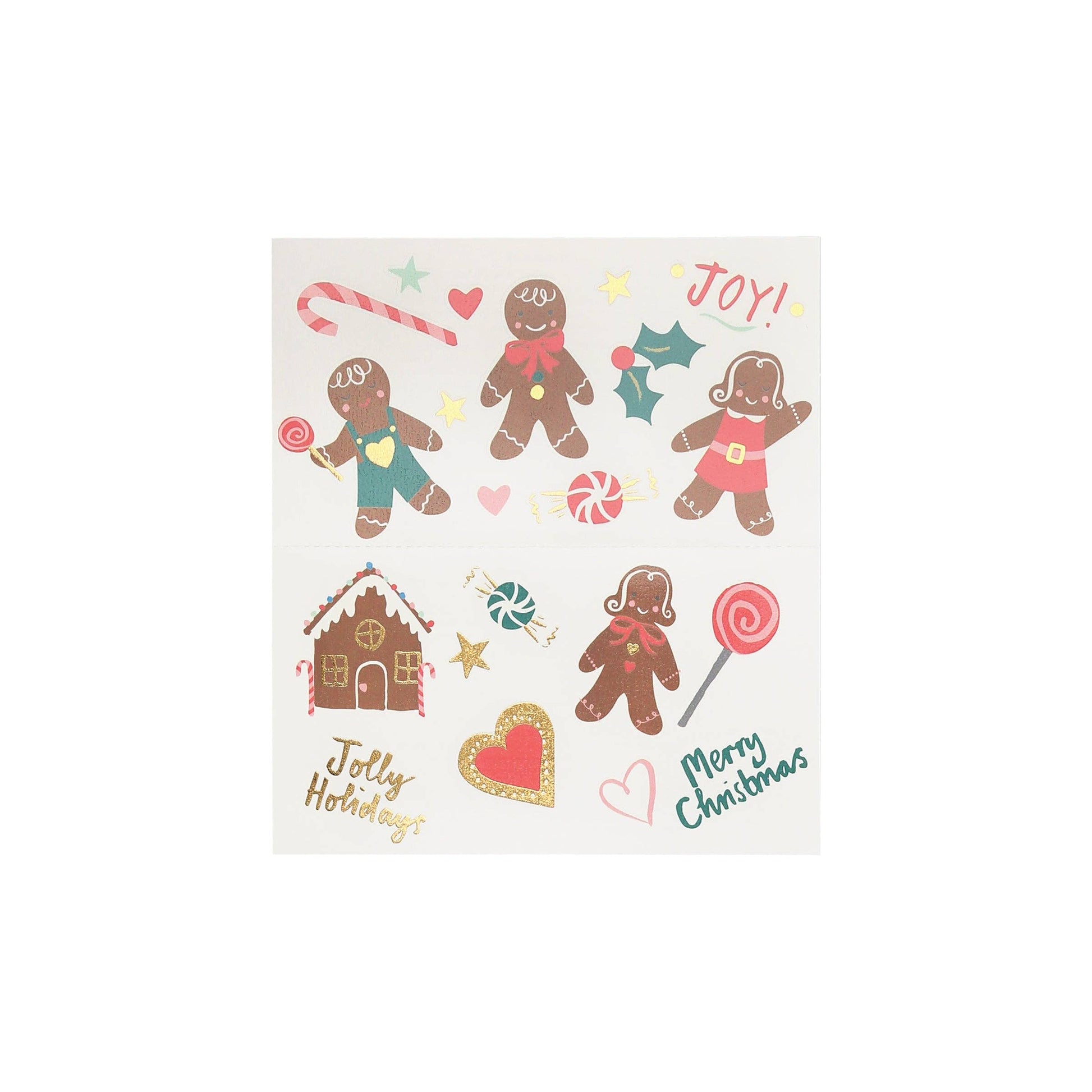 Add a sprinkle of holiday cheer with these Christmas Temporary Tattoos, featuring adorable gingerbread people, candy canes, festive houses, and cheerful seasonal messages. Perfect as stocking fillers, party favours, or kids' party activities, these fun tattoos are easy to apply and full of sparkle thanks to shiny gold foil accents. Packaged in a stylish paper envelope with foil details, they also make a lovely little gift.