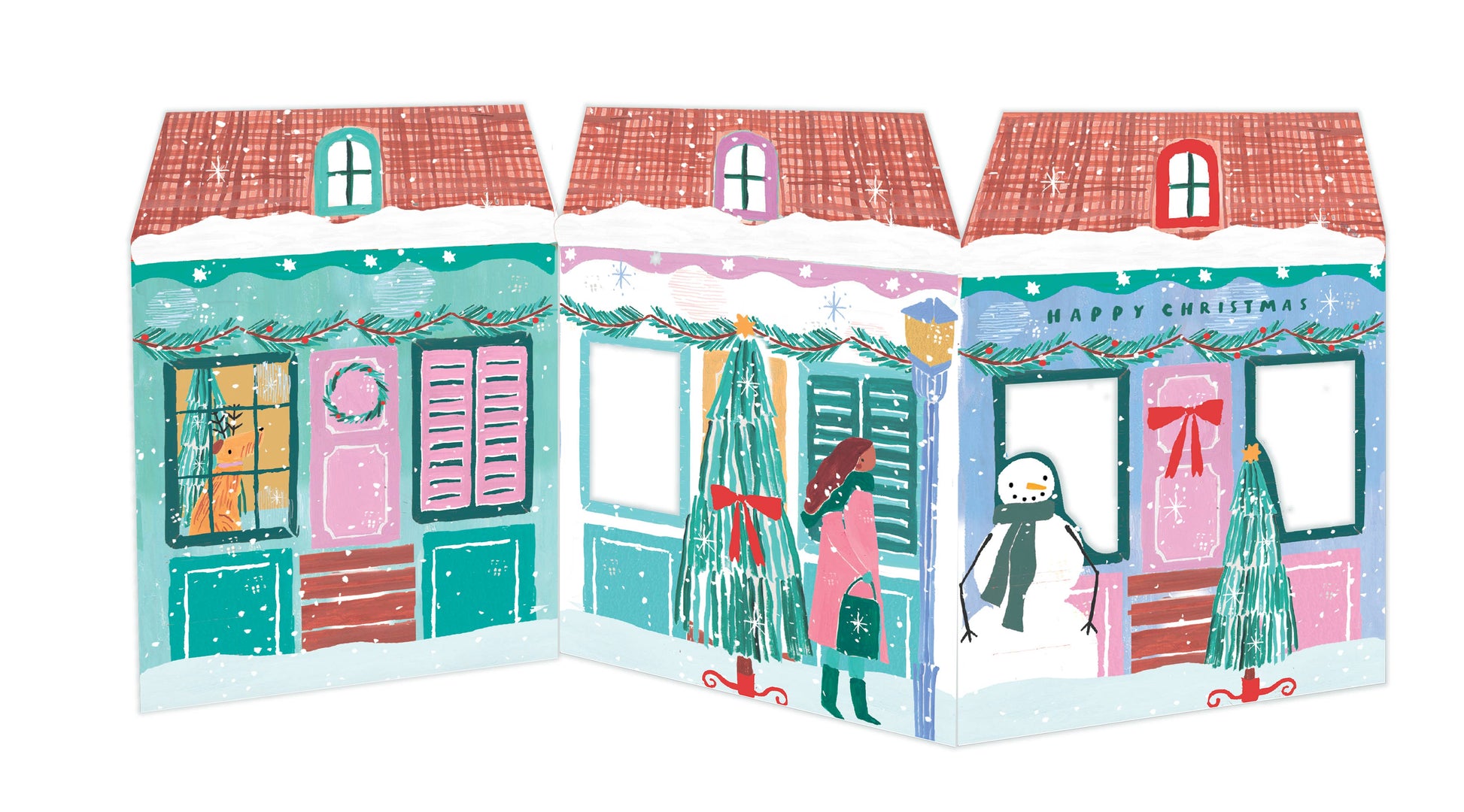 Find lots of Christmas whimsy and magic in our 3-fold die-cut collection Nutmeg. They can be enjoyed pulled out into a concertina or equally folded, where you can peep through the windows for a festive surprise! Each scene has a bright pop of pantone red and comes paired with a red envelope.